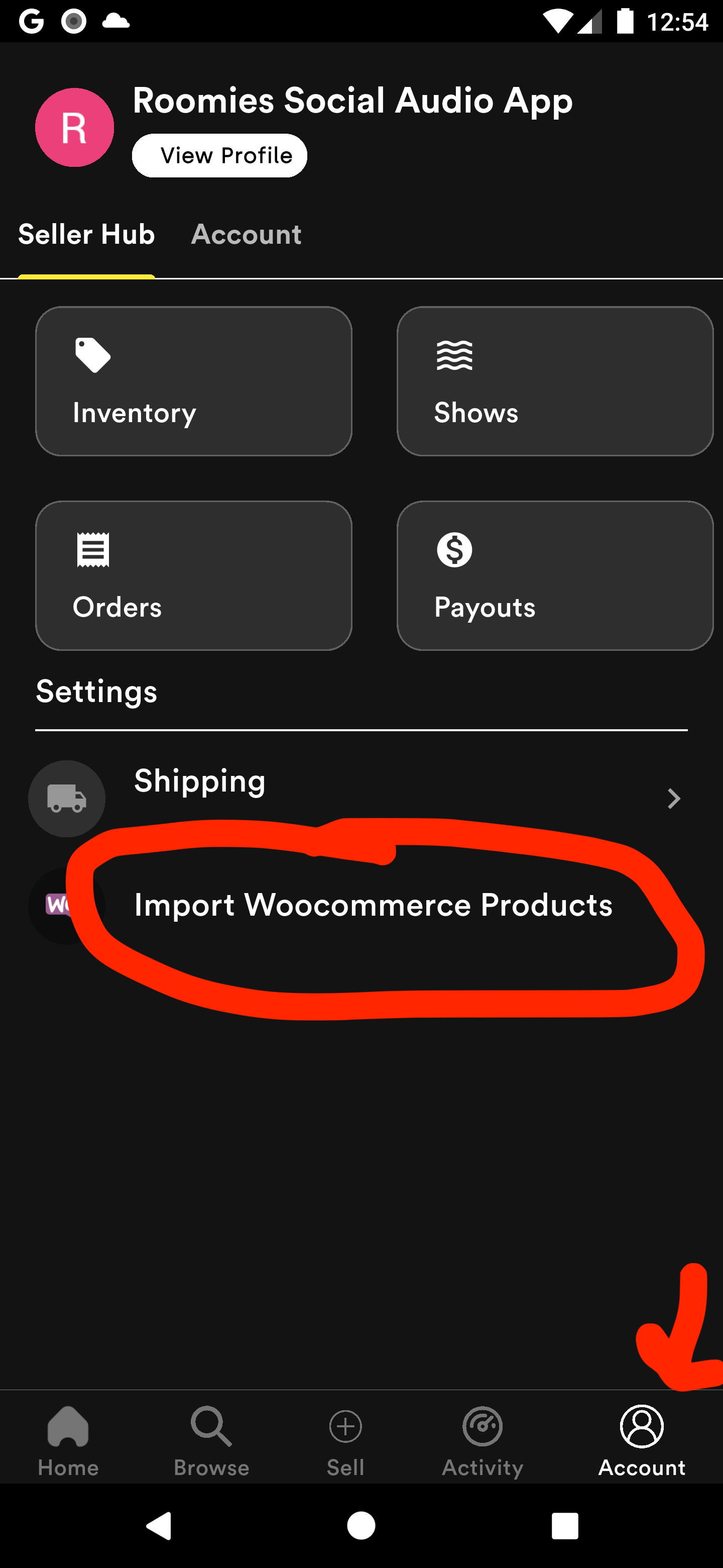 - Go to Account tab and click "Import Woocommerce Products"