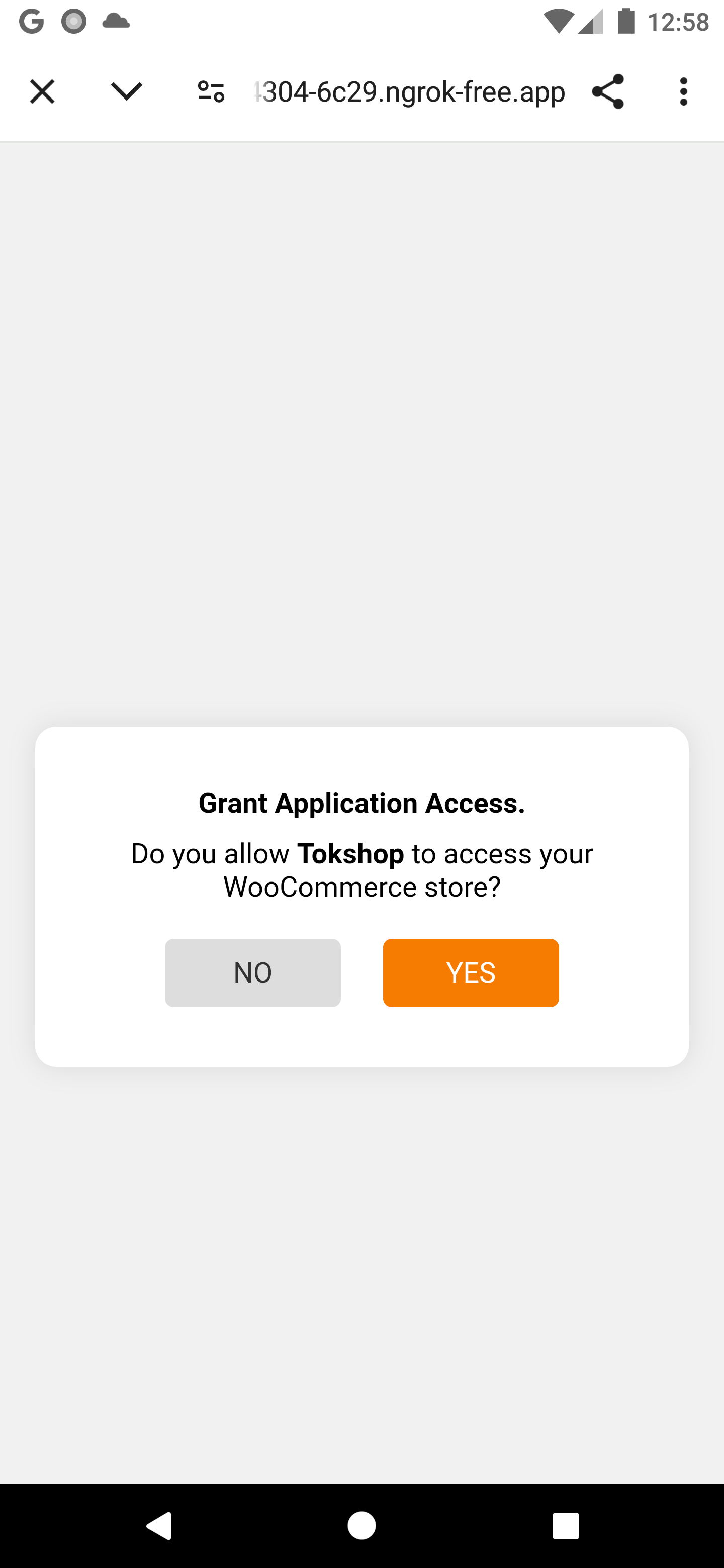 - Click Connect button, you will be asked to grant your tokshop account access to your woocommerce store, click "Yes" and wait for a few seconds, if everything works you will be directed back to your tokshop account