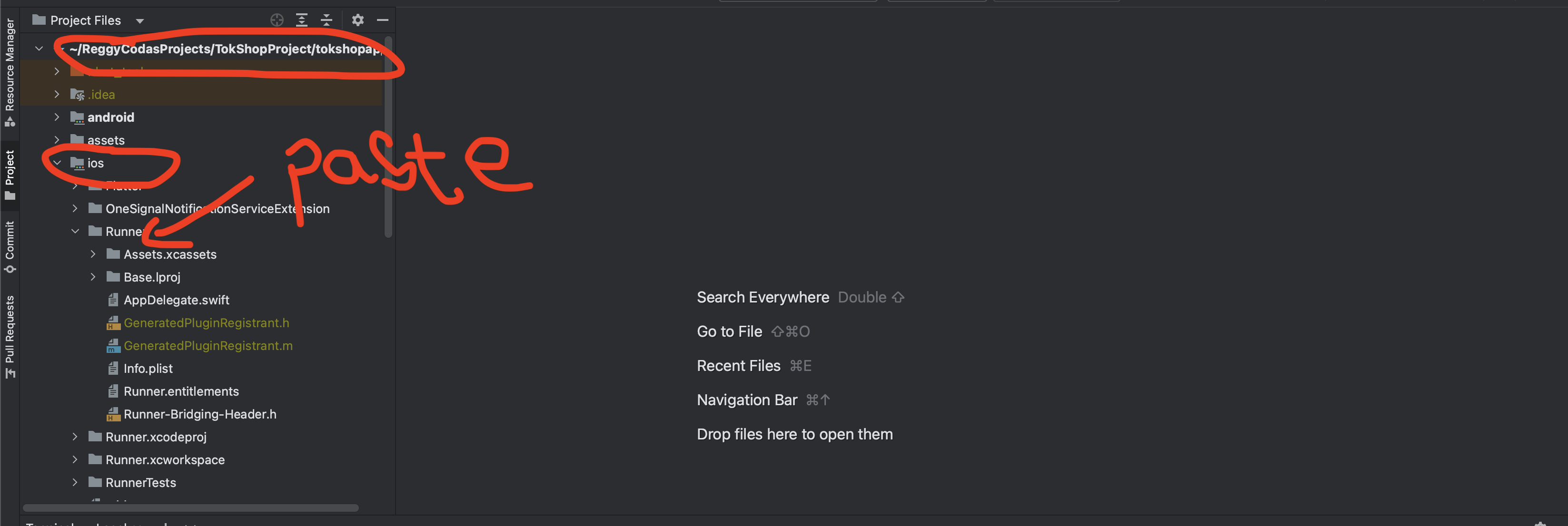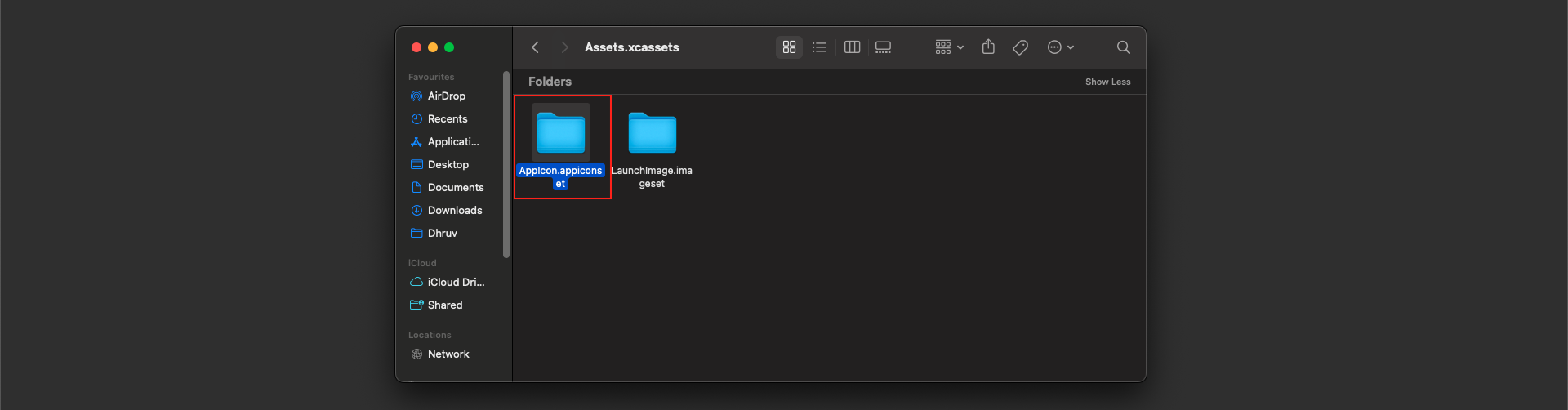 - Navigate to the "ios/Runner directory and locate the ".xcassets" file. Right-click on the "Runner" folder and select "open in Finder". Once in Finder, delete the "Assets.xcassets" folder. Then, paste the "Assets.xcassets" folder from the "AppIcon" directory that you have downloaded.