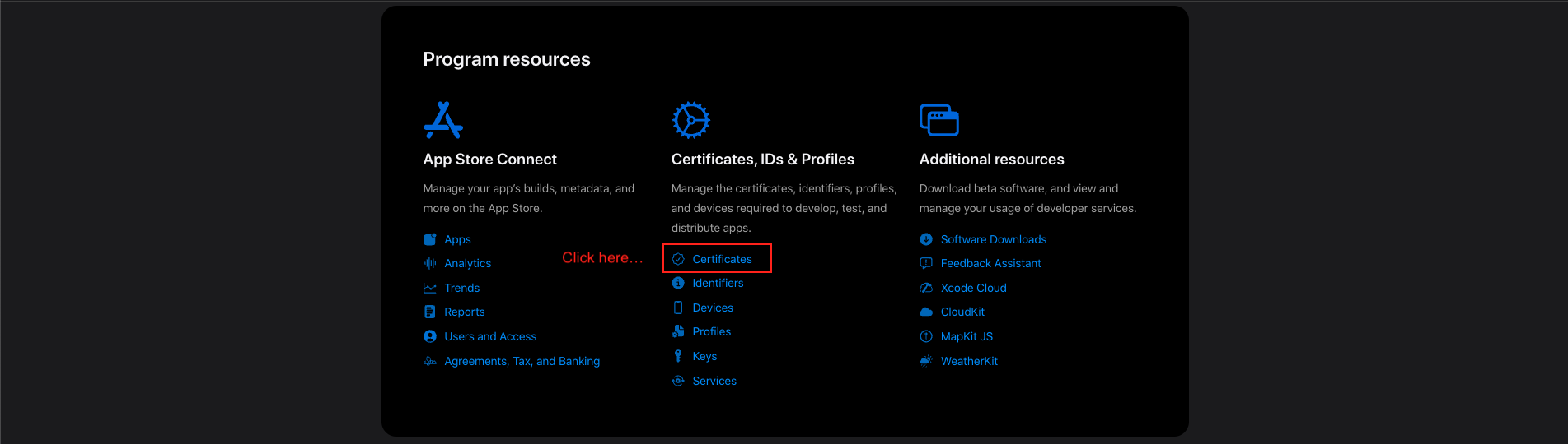 - Navigate to https://developer.apple.com/account.