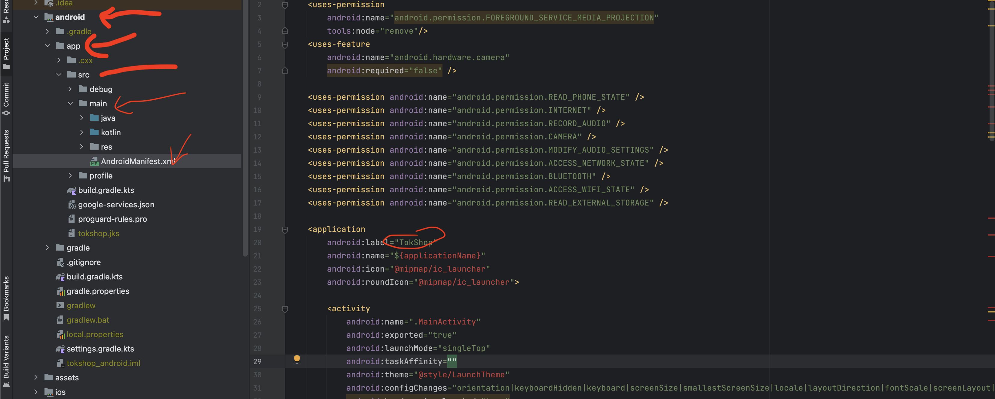 - androidPackageName: "" -> set it to your android package name, you can get it from your project directory -> app -> manifest.xml e.g com.tokshop.com