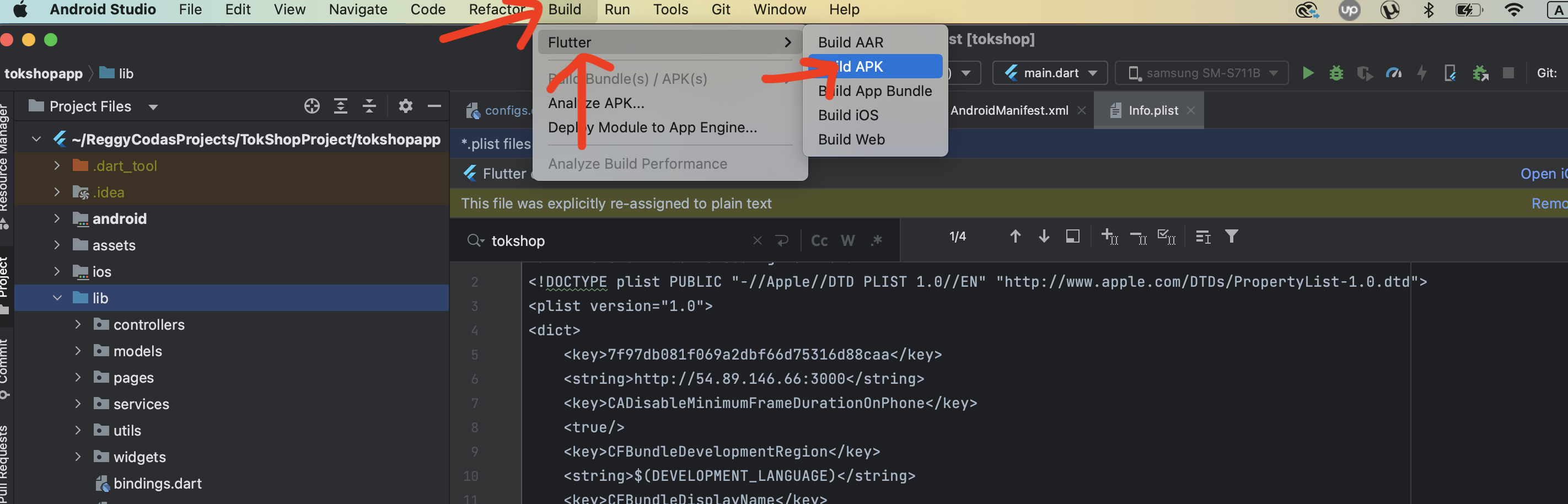 - Access the build options by following this path: "Build" > "Flutter" > "Build APK".