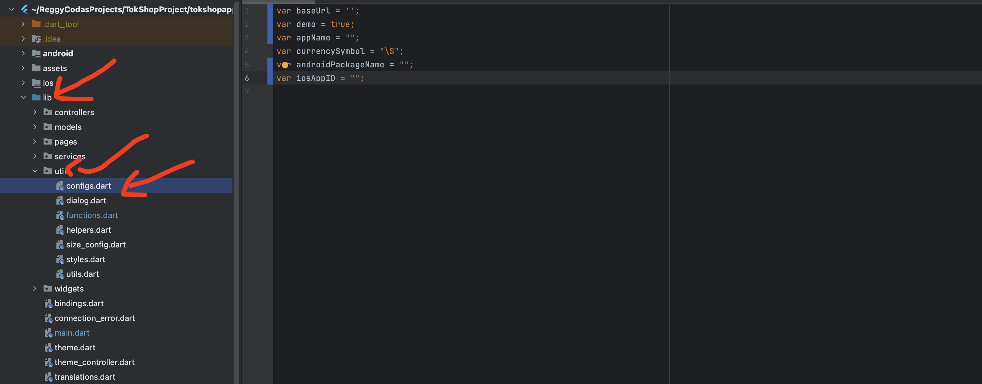 - Open config.dart file